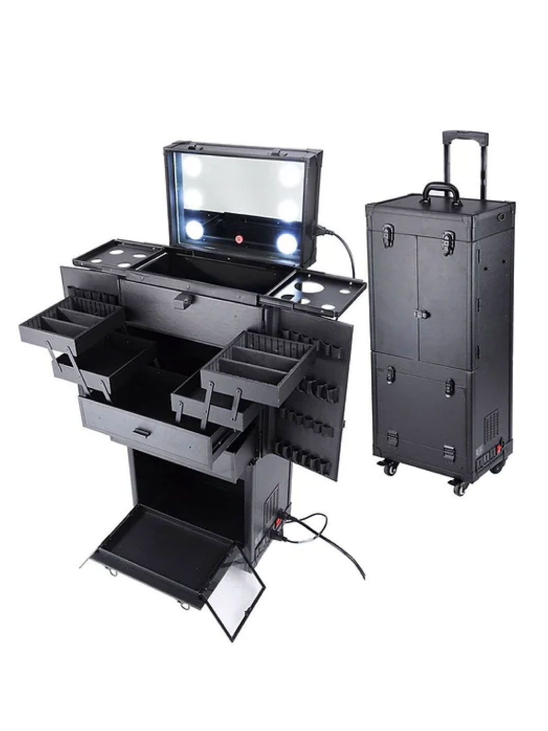 Compact Makeup Trolley Bag with 4 Storage Pouches...